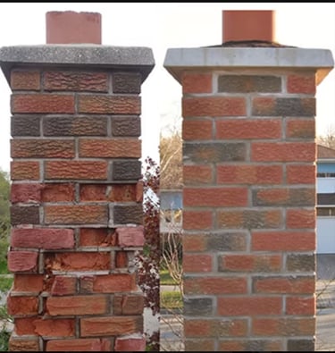 We are experts in chimney replacement, chimney repair, tuck pointing, flue liner repair or replacement, chimney crown repair, brick repair or brick replacement, chimney cleaning, fireplace repair, flashings installed, chimney screens, damper installations or repairs, chimney chase repairs and installations, we stop chimney leaks as well as all other masonry restorations that are related to chimney structures.We are licensed by the state and fully insured with workmen's comp and liability insurance for your protection. Call us today ! put our 40+ years of experience to work for you.
