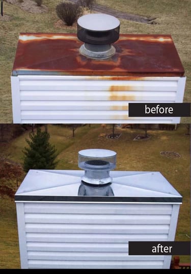 Chimneys without proper covers are susceptible to unwanted guests, such as birds, bees, squirrels, and more. These animals may find the warmth of the chimney an attractive nesting spot, leading to potential blockages and damage. Additionally, nesting materials can be highly flammable, posing a serious fire hazard when the fireplace or appliance is operating. A properly fabricated chimney chase cover combined with a mesh screen around the termination cap for your appliance acts as a deterrent, keeping critters out while allowing proper ventilation.