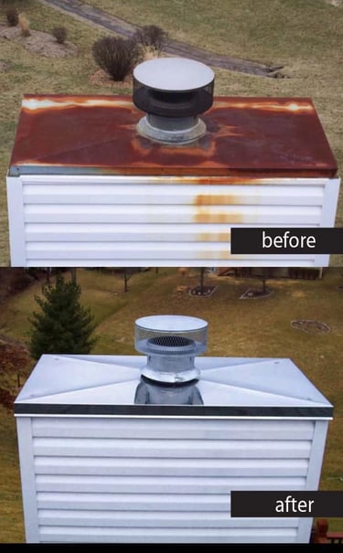 One of the primary functions of a chimney chase cover is to shield your chimney from the elements. Rainwater and snow can be particularly damaging to the structural integrity of your chimney over time. When water enters the chimney chase, it can cause rust or corrosion to the fireplace & pipe, and even compromise the structure of the chase. Water can enter from rust holes in the chase cover or an improper seal where the chase cover meets the flue pipe. A high-quality chimney chase cover acts as a barrier, preventing water from seeping into the chimney and safeguarding it from the harmful effects of moisture. Small details can also play a very important role, such as a cross break to continually sheathe water off the chase cover, drip edge to allow water to drip away from the chase, or the seal type around the flue pipe.