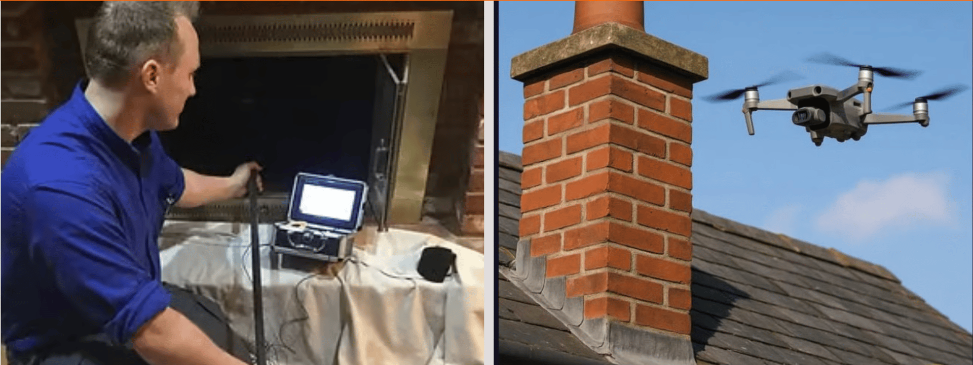 Traditional chimney inspections often require scaffolding, ladders, or costly equipment, making them time consuming and expensive. With our advanced drone technology, we can assess your chimney, flashing, and brickwork quickly and safely saving you time, money, and a hassle free experience.